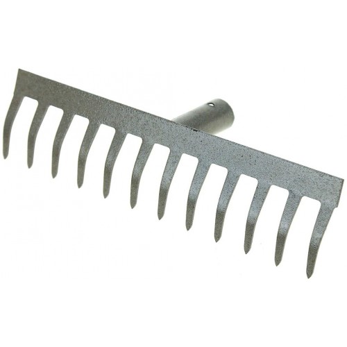 Грабли прямые 12-зубые, эмаль, металлические, без черенка, тулейка д32 мм.