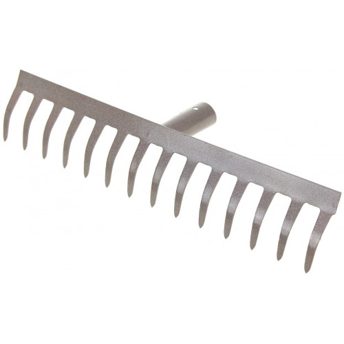 Грабли прямые 14-зубые, эмаль, металлические, без черенка, тулейка д30 мм.