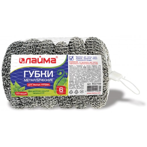 Оформите заказ, чтобы купить оптом и в розницу губки (мочалки) для посуды металлические Лайма, сетчатые, комплект 6х15 г.