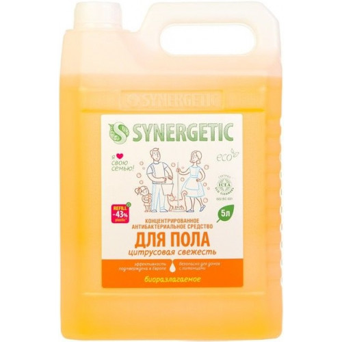 Средство для мытья пола и поверхностей Synergetic (Синергетик) Цитрусовая свежесть, биоразлагаемое, 5 л.