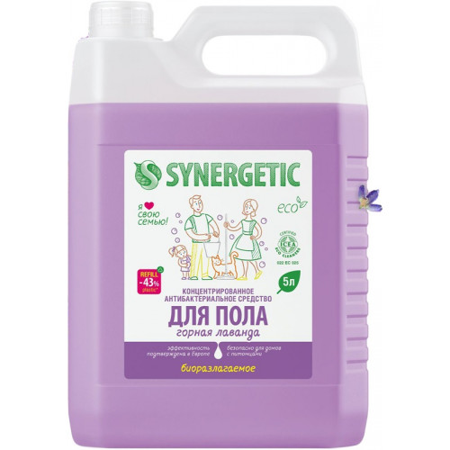 Средство для мытья пола и поверхностей Synergetic (Синергетик) Горная лаванда, биоразлагаемое, 5 л.