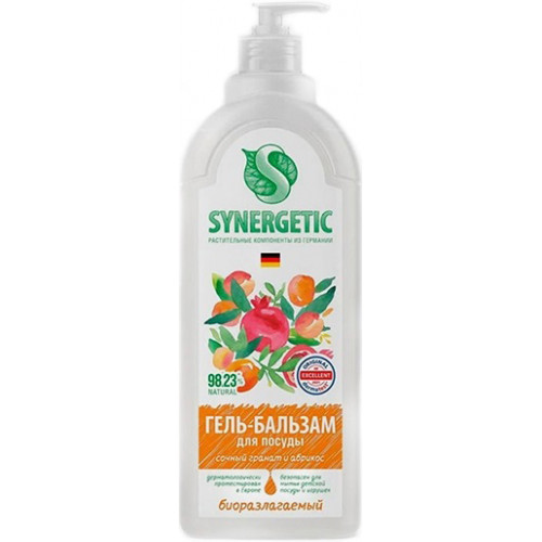 Гель-бальзам для мытья посуды Synergetic Сочный гранат и Абрикос, дозатор, 400 мл