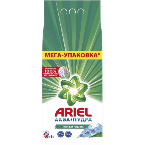 Стиральный порошок автомат Ariel (Ариэль) Аквапудра «Горный родник», 9 кг