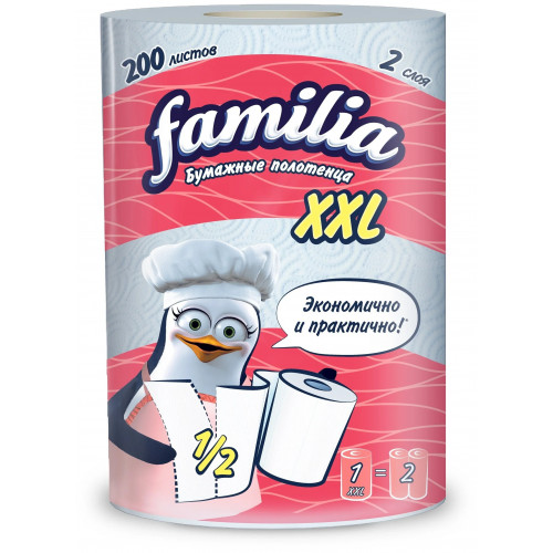 Бумажные полотенца Familia (Фамилия) XXL, цвет белый, 2-х слойные, 2 рулона