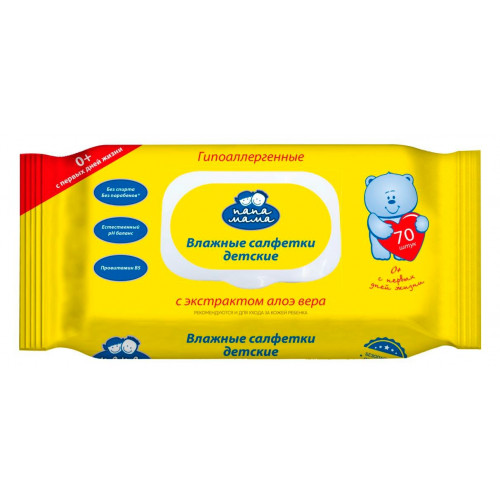 Детские влажные салфетки Папа Мама с экстрактом Алоэ, 72 шт