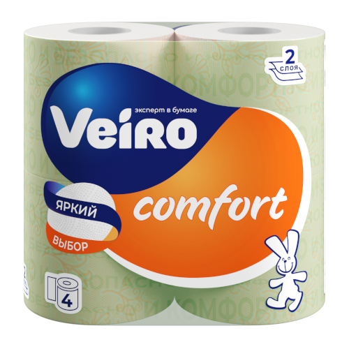 Туалетная бумага Veiro (Вейро) Comfort, цвет белый, 2-х слойная, 4 шт