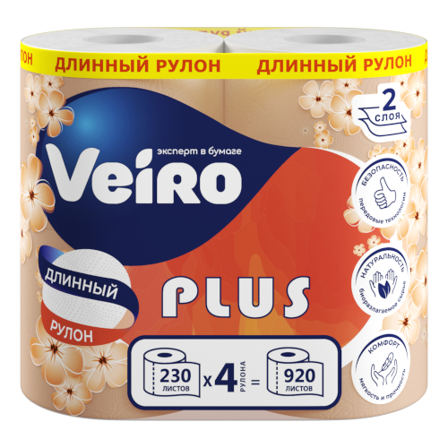 Туалетная бумага Veiro (Вейро) Standart Plus, 2-х слойные, 4 шт.