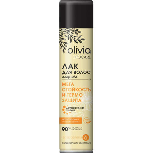 Лак для волос Olivia (Оливия) Fitocare Мега стойкость и термозащита, сверхсильная фиксация - 6, 250 мл.